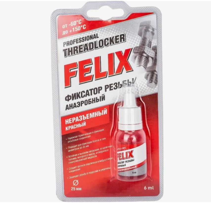Фиксатор резьбы анаэробный неразъемный красный 6мл FELIX